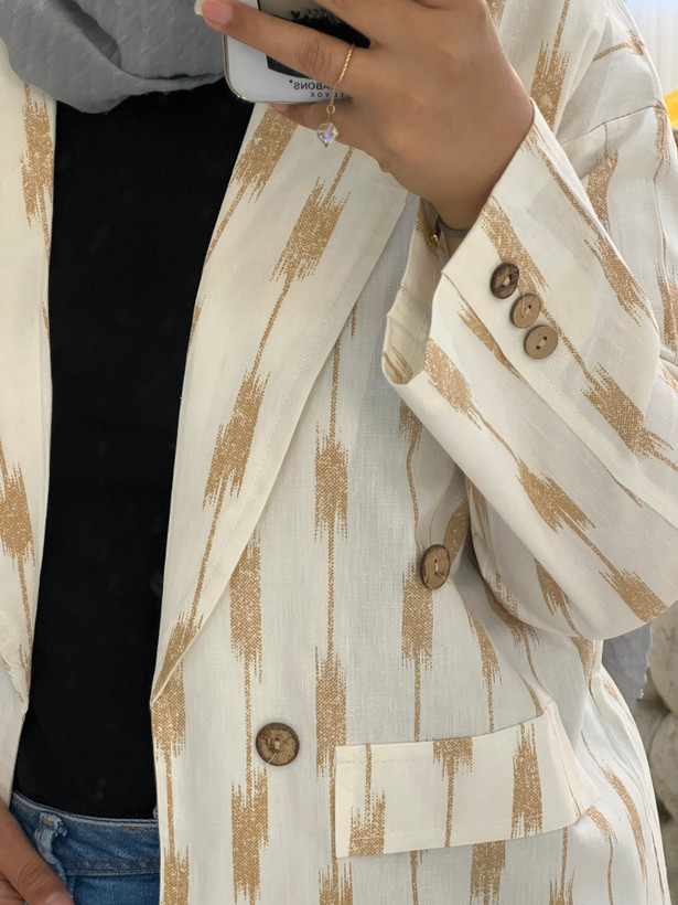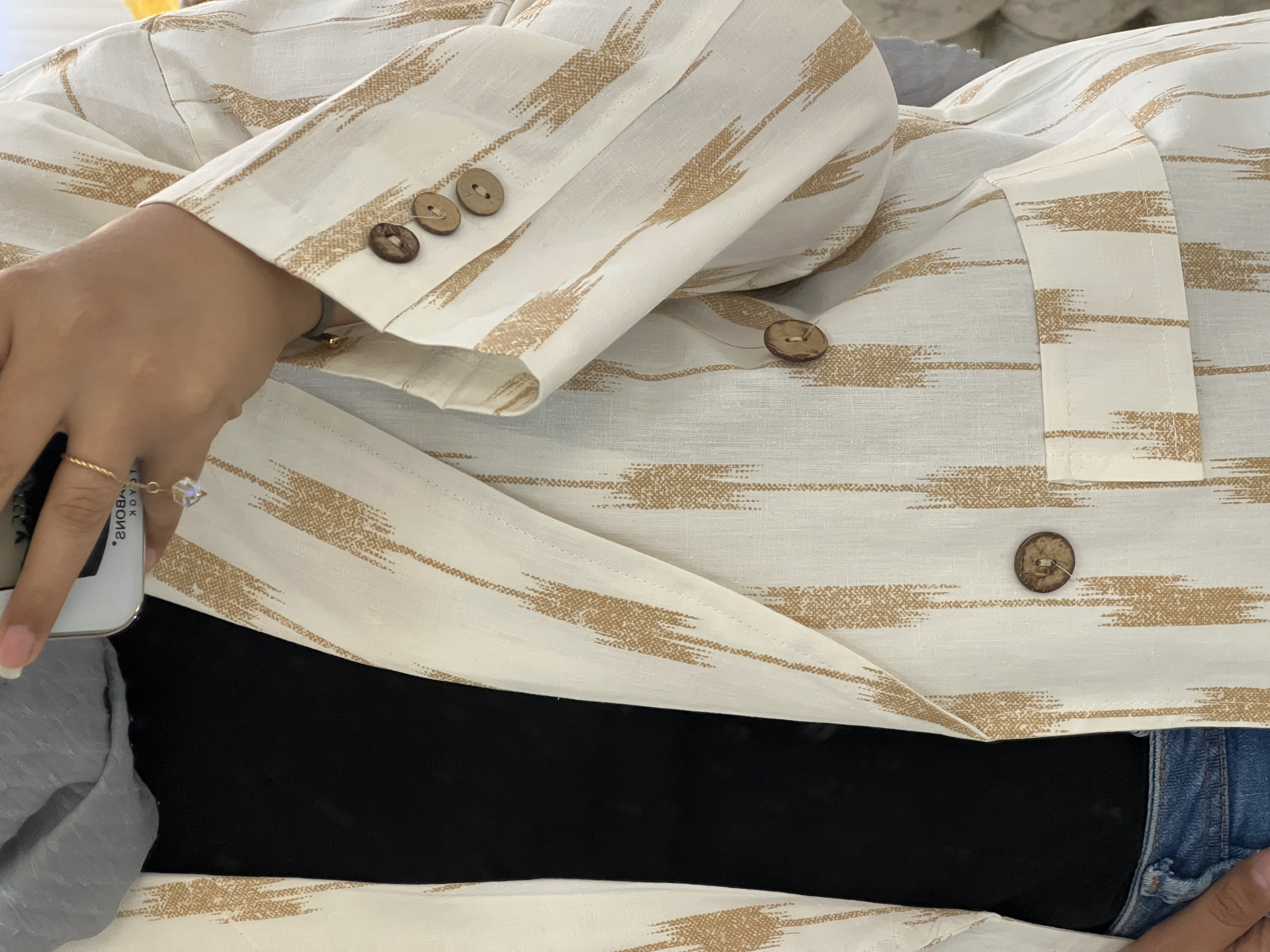 یک کت تک شیک و خاص برای استایلهای کژوال و نیمهرسمی! این کت با طراحی مینیمال و پارچهای سبک، گزینهای عالی برای فصل بهار و تابستان است. الگوی آزاد و راحت آن، باعث میشود روی انواع لباسها به زیبایی بنشیند.