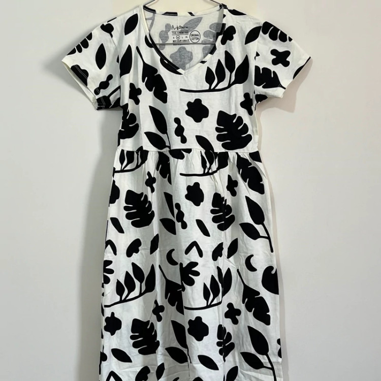 یه انتخاب خاص برای خاصپسندها! این پیراهن نخی با طرح مینیمال برگ و گل مشکی روی زمینه سفید، یه استایل متفاوت و خاص برات میسازه. هم برای خونه و استراحت راحت و خنکه، هم برای پیکنیک یا حتی مهمونیهای خودمونی میتونه خوشاستایل باشه. پارچهاش سبک و لطیفه، یقه هفت و برش زیر سینه داره که باعث میشه تنخورش هم راحت باشه هم زیبا