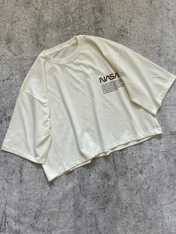 تیشرت کراپ باکسی زنانه طرح nasa